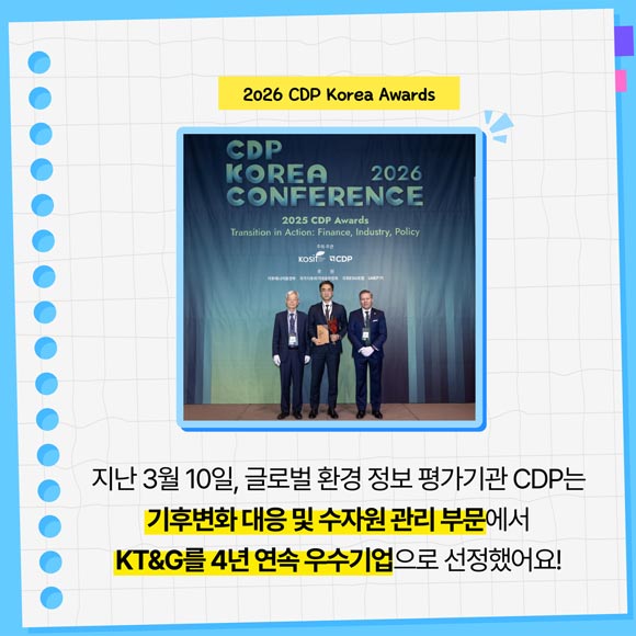 [카드뉴스] KT&G, 4년 연속 기후변화·수자원 관리 우수기업 선정