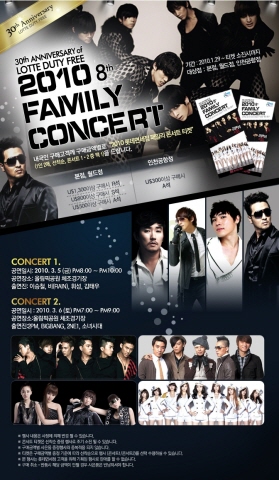 롯데호텔서울의 ‘패밀리 콘서트 패키지’에는 디럭스룸 1박과 롯데시네마, 엔젤리너스 커피전문전, 롯데리아 등에서 사용 가능한 4만원 상당의 롯데 기프트 카드가 포함되며, 롯데호텔월드의 경우 디럭스룸 1박과 롯데월드 자유이용권 2매가 포함되며, 패밀리 콘서트 패키지를 이용하는 선착순 150명의 고객에 한해 ‘2010년 롯데면세점 패밀리 콘서트’ S석 티켓 2매를 제공한다.