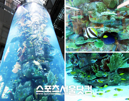 국내 철강업계 1위 답게 포스코의 손은 컸다. 38억원을 들여서 대형 수족관을 만든 것. 수족관은 지하 1층부터 지상 1층까지 연결돼 있으며 폭 5m, 높이 9m에 이른다. 또 수조는 12cm에 달하는 아크릴로 만들어졌다. 그 가격만 해도 12억원에 달한다.