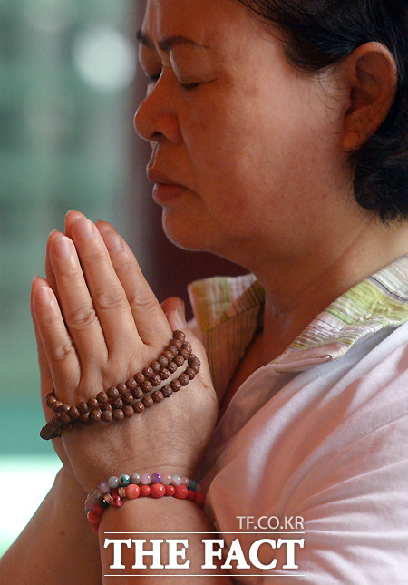 [더팩트ㅣ이새롬 기자] 2015학년도 대학수학능력시험 D-100일인 5일 오전 서울 종로구 견지동 조계사에서 한 학부모가 법회에 참석해 수험생 자녀를 위해 기도하고 있다.