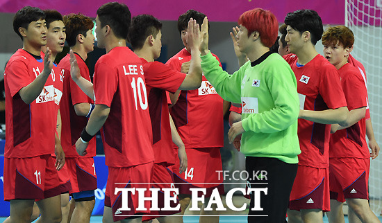 [더팩트|선학핸드볼경기장=최용민 기자]22일 오후 인천 선학핸드볼경기장에서 열린 '2014 인천 아시안게임' 핸드볼 남자부 D조 예선 한국과 대만의 경기에서 27-14로 한국이 승리를 거두면서 D조 1위를 확정지었다.