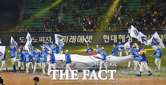 [더팩트|잠실야구장=최용민 기자]11일 오후 서울 잠실야구장에서 열린 2014 프로야구 한국시리즈 6차전 삼성 라이온즈와 넥센 히어로즈의 경기에서 삼성이 넥센을 11-1로 누르고 시리즈 전적 4승 2패로 4년 연속 한국시리즈 통합 우승을 달성했다. 삼성 선수들이 그라운드를 돌며 세리머니를 하고 있다.