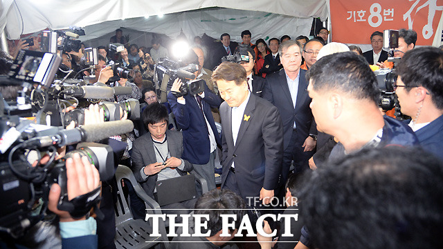 4ㆍ29 재보선이 열린 29일 오후 서울 관악구 을 무소속 정동영 후보가 관악구 조원동 천막캠프 선거사무소를 찾아 선거 패배에 대한 이야기를 한 후 자리를 떠나고 있다.