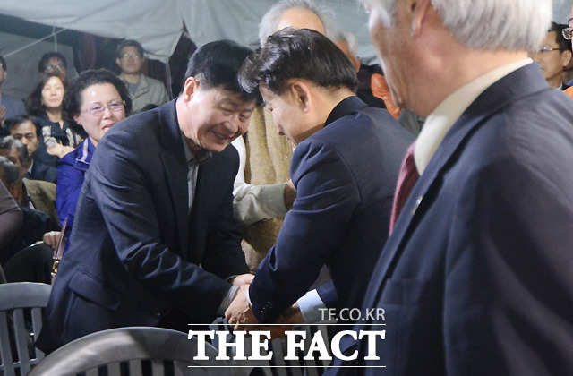 4ㆍ29 재보선이 열린 29일 오후 서울 관악구 을 무소속 정동영 후보가 관악구 조원동 천막캠프 선거사무소를 찾아 지지자들과 인사를 나누고 있다. [더팩트 ㅣ 이효균 기자 anypic@tf.co.kr]
