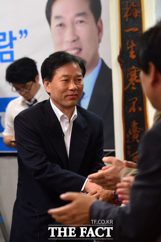 4.29 재보궐 선거 서울 관악을에서 새누리당 오신환 후보가 당선을 확실시한 가운데 같은 지역구 정태호 후보가 서울 관악구 신림동에 위치한 선거 사무소를 찾아 지지자들과 악수를 나누고 있다.