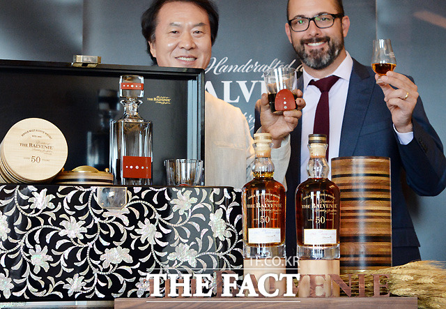 위스키 전문 업체 윌리엄그랜트앤선즈코리아(대표 김일주)가 9일 오전 서울 장충동 신라호텔에서 전 세계 128병만 생산한 100% 수제 싱글몰트 위스키 발베니 50년 한 세트를 국내 처음으로 선보이고 있다.