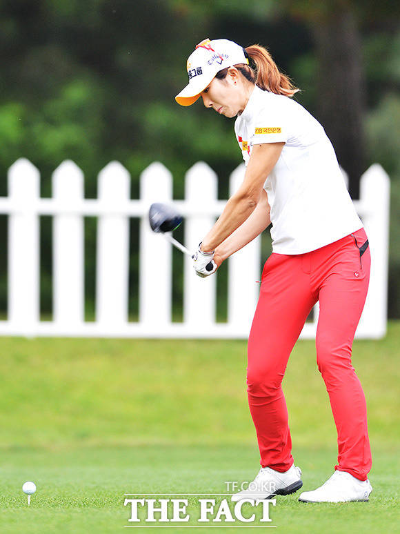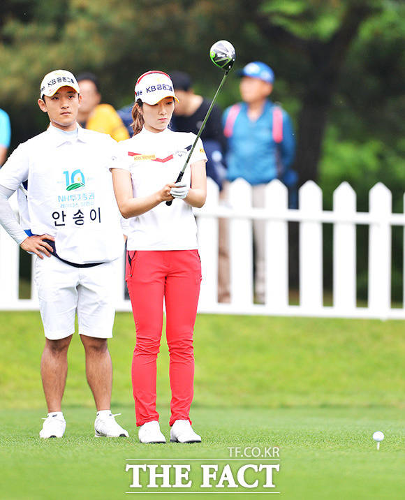 [더팩트 | 용인=이덕인 기자] 2017 한국여자프로골프(KLPGA) 투어 'NH투자증권 레이디스 챔피언십'이 12일 경기 용인시 기흥구 수원컨트리클럽(파72/6,494야드)에서 열려 안송이(27,KB금융그룹) 선수가 티샷을 하고 있다.