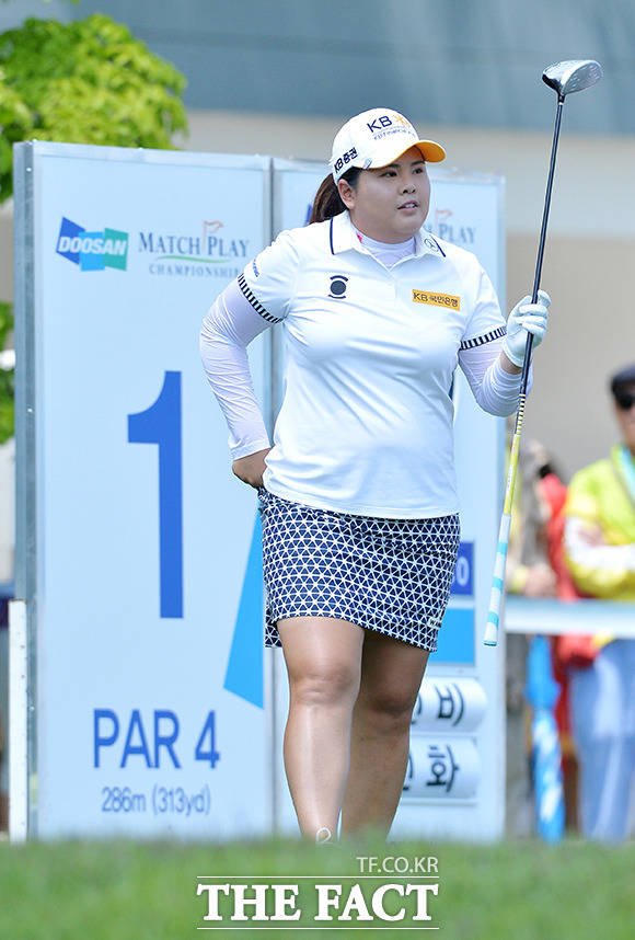 [더팩트 | 춘천=이덕인 기자] 2017 한국여자프로골프(KLPGA) 투어 '두산 매치플레이 챔피언십'이 17일 강원 춘천시 라데나 골프클럽(파72·6277야드)에서 열려 박인비(29·KB금융그룹) 선수가 1번 홀로 들어서고 있다.