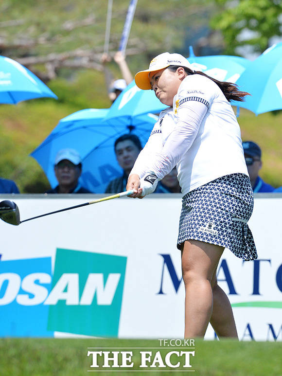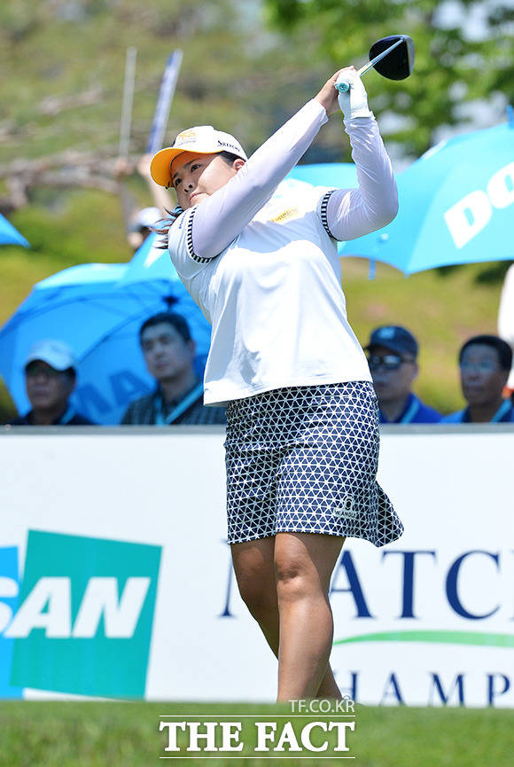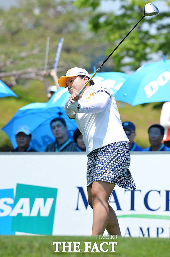 [더팩트 | 춘천=이덕인 기자] 2017 한국여자프로골프(KLPGA) 투어 '두산 매치플레이 챔피언십'이 17일 강원 춘천시 라데나 골프클럽(파72·6277야드)에서 열려 박인비(29·KB금융그룹) 선수가 티샷을 하고 있다.