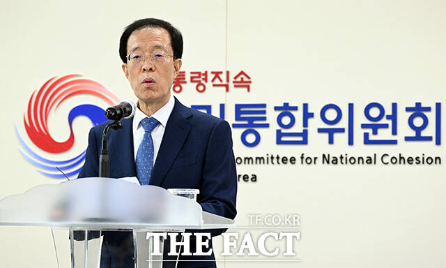 [더팩트ㅣ임영무 기자] 이석연 신임 국민통합위원장이 15일 오후 서울 종로구 정부서울청사에서 열린 취임식에 참석해 취임사를 하고 있다.