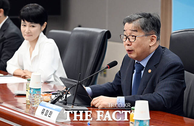 [더팩트ㅣ임영무 기자] 유철환 국민권익위원회 위원장(오른쪽)이 24일 오전 서울 종로구 정부서울청사에서 열린 자립준비청년 멘토 위촉식에 참석해 인사말을 하고 있다.