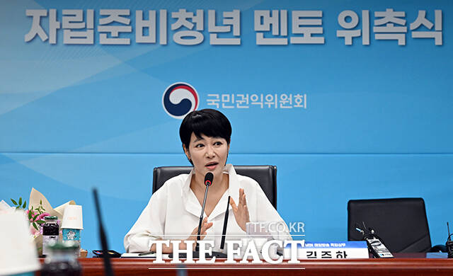 [더팩트ㅣ임영무 기자] 자립준비청년 명예멘토로 위촉된 김주하 MBN 특임상무가 24일 오전 서울 종로구 정부서울청사에서 열린 국민권익위원회 자립준비청년 멘토 위촉식에 참석해 인사말을 하고 있다.