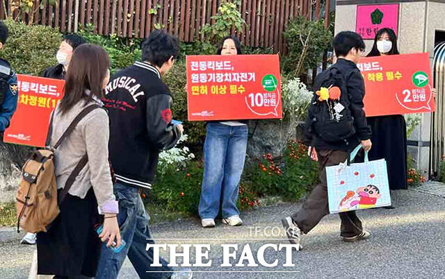 [더팩트ㅣ임영무 기자] 송파구(구청장 서강석)가 24일 오전 서울 송파구 한림연예예술고등학교 앞에서 청소년 교통사고 예방을 위한 전동킥보드 등 개인형 이동장치 안전이용 캠페인을 펼치고 있다.