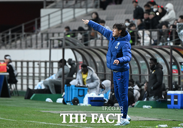 [더팩트ㅣ서울월드컵경기장=박헌우 기자] 대한민국과 가나의 A매치 친선경기가 18일 오후 서울 마포구 서울월드컵경기장에서 열린 가운데 홍명보 감독이 작전지시를 하고 있다.