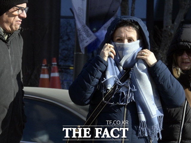 [더팩트ㅣ송호영 기자] 서울의 낮 최고기온이 영하 3도에 머무르는 등 한겨울 날씨가 찾아온 3일 서울 종로구 광화문 인근에서 외국인 관광객이 옷에 달린 모자를 쓰고 있다.