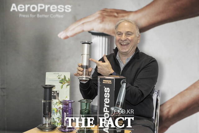 [더팩트ㅣ이효균 기자] 6일 서울 성수동 레이어스튜디오 41에서 열린 ‘2025 월드 에어로프레스 챔피언십’ 현장에서 제라드 마이어(Gerard Meyer) 에어로프레스 CEO가 신제품 ‘에어로프레스 프리미엄’을 소개하고 있다.