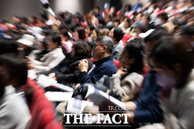 [더팩트ㅣ서예원 기자] 2026 대입 정시모집 대비 진학설명회가 13일 오전 서울 성북구 고려대학교 인촌기념관에서 열린 가운데 수험생과 학부모들이 담당자의 설명을 듣고 있다.