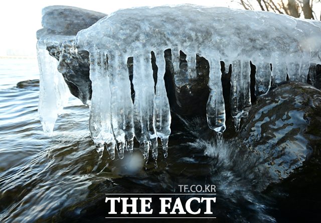 [더팩트ㅣ이새롬 기자] 서울 기온이 영하 11도를 기록하는 등 전국 대부분 지역에 한파특보 및 한파주의보가 발효된 26일 오전 서울 마포구 양화한강공원 일대에 고드름이 얼어있다.