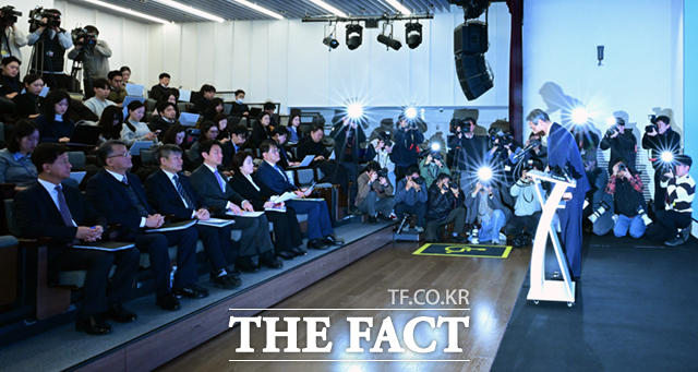 [더팩트ㅣ이새롬 기자] 김건희 여사 연루 의혹을 수사해 온 민중기 특별검사가 29일 서울 종로구 KT광화문빌딩 웨스트에서 종합 브리핑을 열고 수사 결과를 발표에 앞서 인사하고 있다.