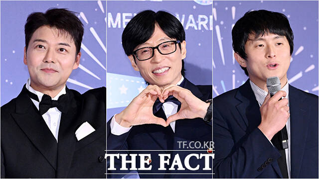 [더팩트ㅣ서예원 기자] 방송인 전현무와 유재석, 기안84(왼쪽부터)가 29일 오후 서울 마포구 MBC 미디어센터에서 열린 ‘2025 MBC 방송연예대상’ 레드카펫에 참석해 포즈를 취하고 있다.