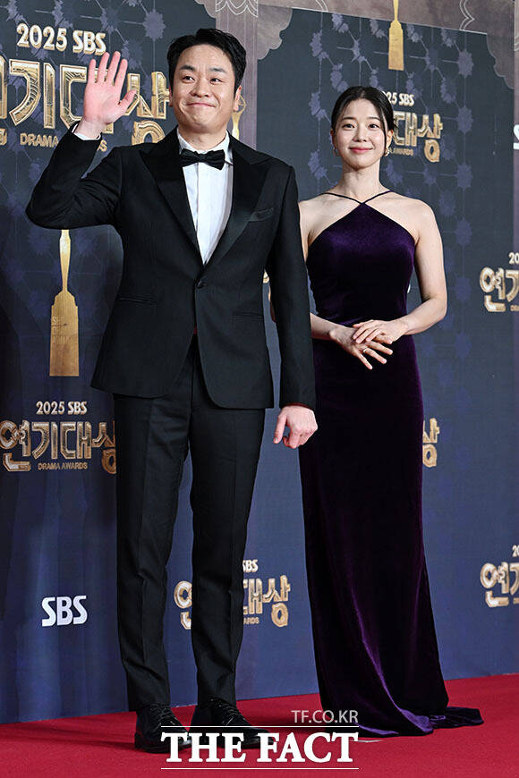 [더팩트ㅣ남용희 기자] 배우 이성욱(왼쪽)과 임세미가 31일 오후 서울 마포구 SBS프리즘타워에서 열린 'SBS 연기대상' 포토월에 참석해 포즈를 취하고 있다.