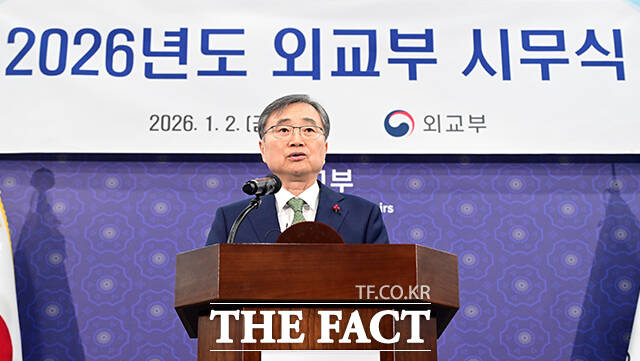 [더팩트ㅣ임영무 기자] 조현 외교부 장관이 2일 오후 서울 종로구 외교부에서 열린 시무식에 참석해 신년사를 하고 있다.