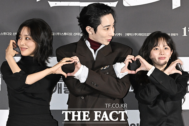 [더팩트 | 송호영 기자] 배우 차주영과 이수혁, 정지소(왼쪽부터)가 12일 오후 서울 용산구 CGV 용산아이파크몰점에서 열린 영화 '시스터' 언론시사회 및 기자간담회에 참석해 포즈를 취하고 있다.