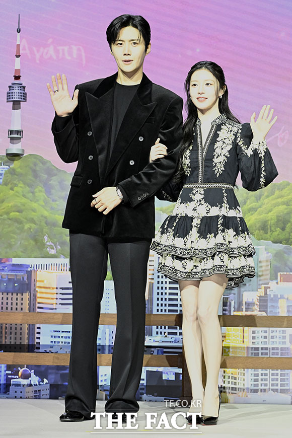 [더팩트 | 송호영 기자] 배우 김선호와 고윤정이 13일 오전 서울 강남구 조선팰리스 강남에서 열린 넷플리스 새 시리즈 '이 사랑 통역되나요?' 제작발표회에 참석해 포즈를 취하고 있다.