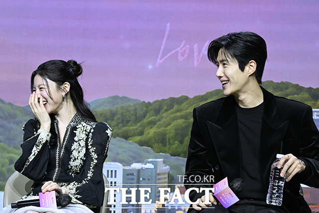 [더팩트 | 송호영 기자] 배우 고윤정과 김선호가 13일 오전 서울 강남구 조선팰리스 강남에서 열린 넷플리스 새 시리즈 '이 사랑 통역되나요?' 제작발표회에 참석해 웃음을 짓고 있다.