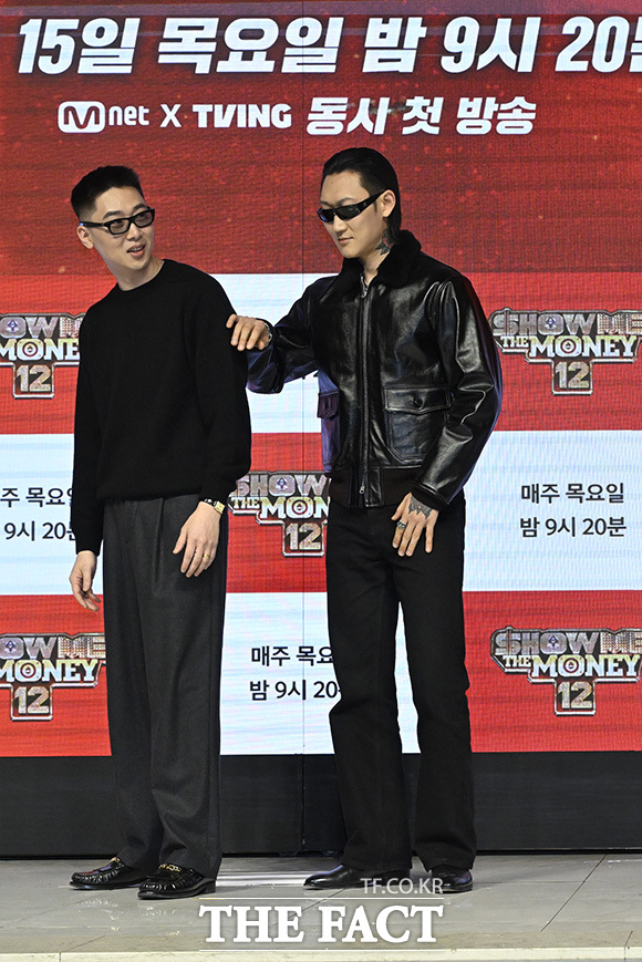 [더팩트 | 송호영 기자] 프로듀서 허키 시바세키(왼쪽)와 가수 제이통이 15일 오전 서울 강남구 논현로 엘리에나호텔 그랜드볼룸에서 열린 Mnet 새 힙합 오디션 예능프로그램 '쇼미더머니12' 제작발표회에 참석해 포즈를 취하고 있다.