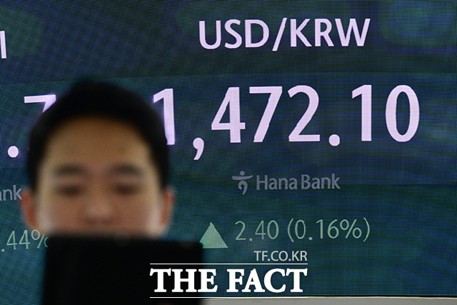 [더팩트ㅣ남윤호 기자] 16일 서울 중구 하나은행 딜링룸에 원/달러 환율이 2.40 오른 1472.10으로 표시되고 있다. 이날 원/달러 환율은 서울 외환시장에서 0.3원 오른 1470원에 개장했다.