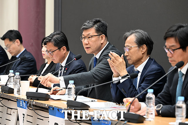 [더팩트ㅣ국회=남용희 기자] 김남근 더불어민주당 의원(가운데)이 21일 오후 서울 여의도 국회 의원회관에서 열린 '홈플러스, 이대로 문닫게 할 것인가' 긴급 좌담회에서 발언을 하고 있다.