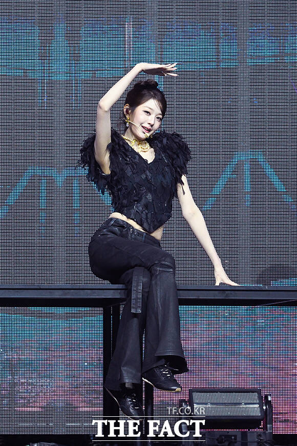 [더팩트ㅣ서예원 기자] 그룹 아이브의 장원영이 23일 오후 서울 광진구 예스24 라이브홀에서 열린 정규 2집 ‘REVIVE+(리바이브 플러스)’ 발매 기념 미디어 쇼케이스에 타이틀곡 블랙홀 무대를 펼치고 있다.