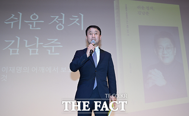 [더팩트|인천=박헌우 기자] 한병도 더불어민주당 원내대표가 2일 오후 인천 계양구 경인교육대학교에서 '쉬운 정치, 김남준' 북콘서트에 참석해 축사를 하고 있다.