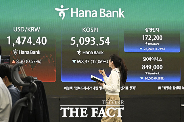 이날 코스피는 전 거래일보다 698.37포인트(12.06%) 내린 5,093.54에 장을 마쳤다.