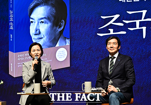 [더팩트 | 배정한 기자] 이해민 조국혁신당 의원(왼쪽)이 4일 오후 서울 종로구 노무현 시민센터에서 열린 ‘조국의 선택’ 저자와의 대화에 참석해 진행을 하고 있다.