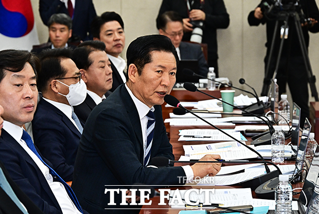 [더팩트 | 국회=배정한 기자] 정청래 더불어민주당 대표가 17일 오후 서울 여의도 국회에서 열린 국방위원회 전체회의에 참석해 질의를 하고 있다.