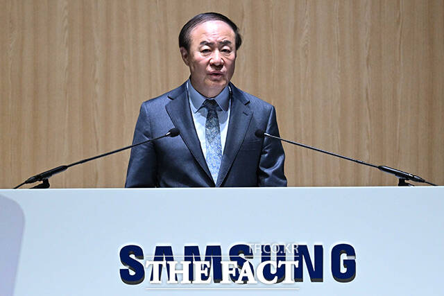 [더팩트ㅣ수원=임영무 기자] 전영현 삼성전자 부회장 겸 DS부문장이 18일 오전 경기 수원 영통구 수원컨벤션센터에서 열린 제57기 삼성전자 정기 주주총회에 참석해 인사말을 하고 있다.