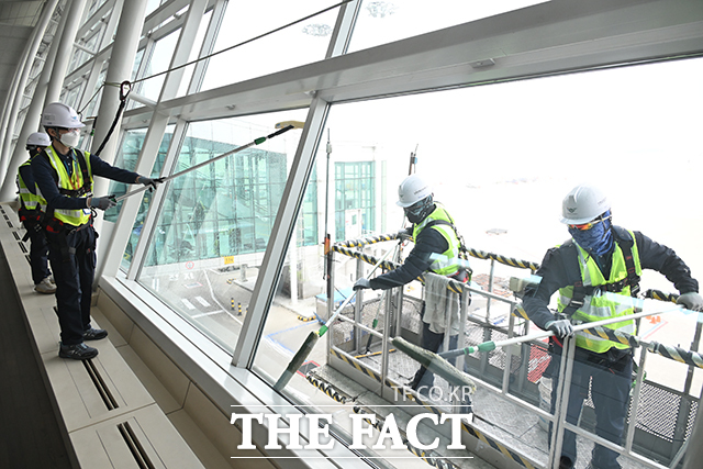 [더팩트ㅣ인천국제공항=남윤호 기자] 인천국제공항공사 직원들이 26일 인천국제공항 제1터미널에서 봄맞이 대청소를 실시하고 있다.
