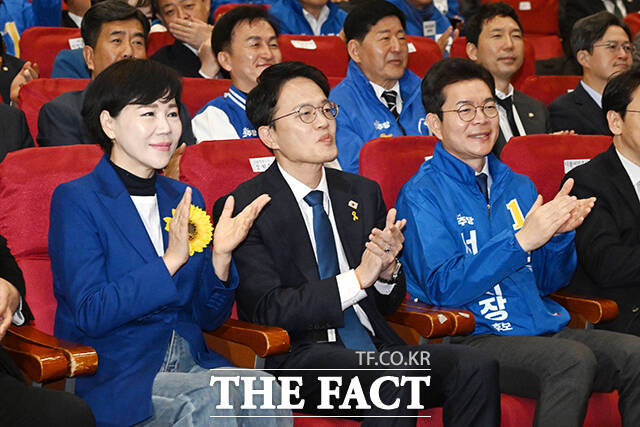 [더팩트ㅣ국회=서예원 기자] 전현희·박주민·정원오 더불어민주당 서울시장 예비 후보(왼쪽부터)가 30일 오전 서울 여의도 국회 의원회관에서 열린 서울 현장 최고위원회의에 참석해 박수를 치고 있다.