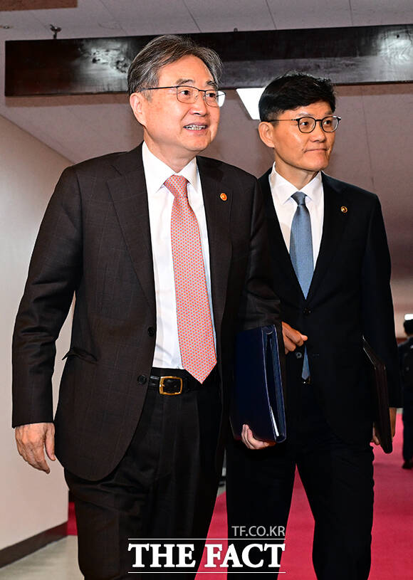 [더팩트ㅣ임영무 기자] 조현 외교부 장관(왼쪽)이 30일 오전 서울 종로구 정부서울청사에서 열린 임시 국무회의에 참석하고 있다.