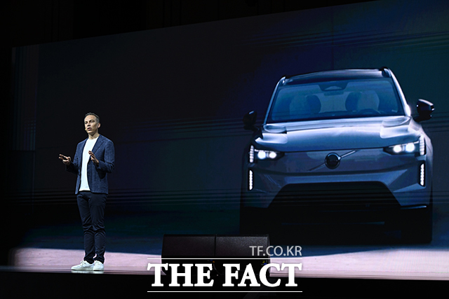 [더팩트ㅣ영종도=남윤호 기자] 1일 인천 중구 인스파이어 리조트에서 볼보의 차세대 전기 플래그십 SUV EX90이 공개된 가운데 에릭 세베린손 볼보 최고영업책임자 차량 설명을 하고 있다.