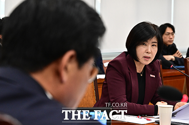 [더팩트 | 국회=배정한 기자] 김미애 국민의힘 의원이 2일 오전 서울 여의도 국회에서 열린 보건복지위원회 전체회의에 참석해 의사진행 발언을 하고 있다.