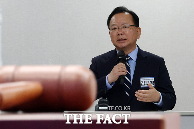 [더팩트 | 송호영 기자] 6.3 지방선거 대구광역시장 출마를 선언한 김부겸 전 국무총리가 3일 오전 서울 여의도 더불어민주당사에서 열린 공천 심사 면접에서 포부를 밝히고 있다.