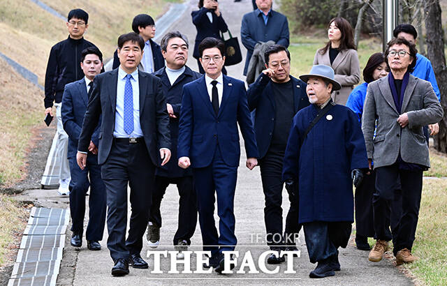 [더팩트ㅣ임영무 기자] 정원오 더불어민주당 서울시장 후보(가운데)가 대한민국 임시정부 수립 기념일인 11일 오전 서울 동작구 국립서울현충원 임시정부요인묘소를 참배를 위해 이동하고 있다.