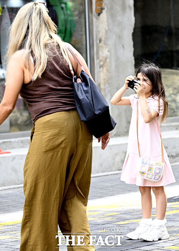 [더팩트 | 송호영 기자] 서울의 낮 최고기온이 27도까지 오르는 등 초여름 날씨가 이어진 14일 오후 서울 중구 명동 거리에서 가벼운 옷차림의 어린이 관광객이 사진을 촬영하고 있다.