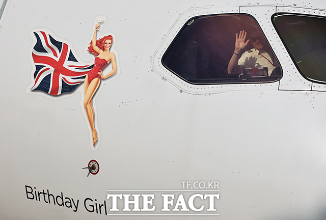[더팩트ㅣ공항사진기자단] 14일 오전 인천국제공항 제2여객터미널주기장에 도착한 영국 버진애틀랜틱의 런던 히드로발 항공기 조종석에서 파일럿이 밖을 향해 손을 흔들며 인사하고 있다.