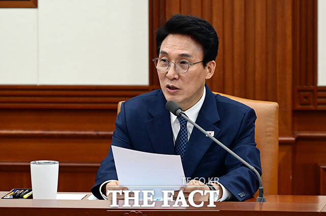 [더팩트ㅣ임영무 기자] 김민석 국무총리가 22일 오전 서울 종로구 정부서울청사에서 열린 비상경제본부 회의에 참석해 모두발언을 하고 있다.