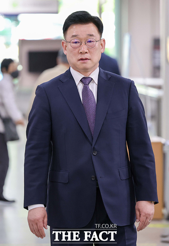 [더팩트ㅣ남윤호 기자] 이광우 전 대통령 경호처 경호본부장이 23일 서울 서초구 서울중앙지법에서 열린 특수공무집행방해 등 혐의와 관련한 공판에 참석하고 있다.