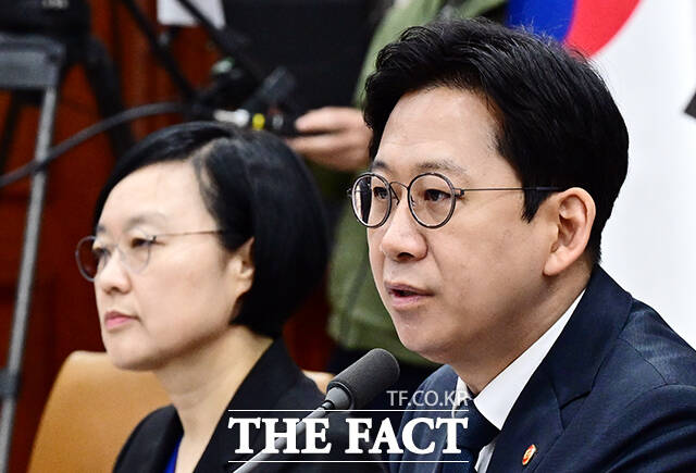 [더팩트ㅣ임영무 기자] 배경훈 부총리 겸 과학기술정보통신부 장관(오른쪽)이 30일 오전 서울 종로구 정부서울청사에서 열린 과학기술관계장관회의에 참석해 모두발언을 하고 있다.